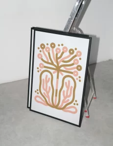 Il suo stile si distingue per l’uso di forme essenziali, colori e linee pulite, adattandosi conversatilità a marchi, libri, murales e commissioni artistiche.