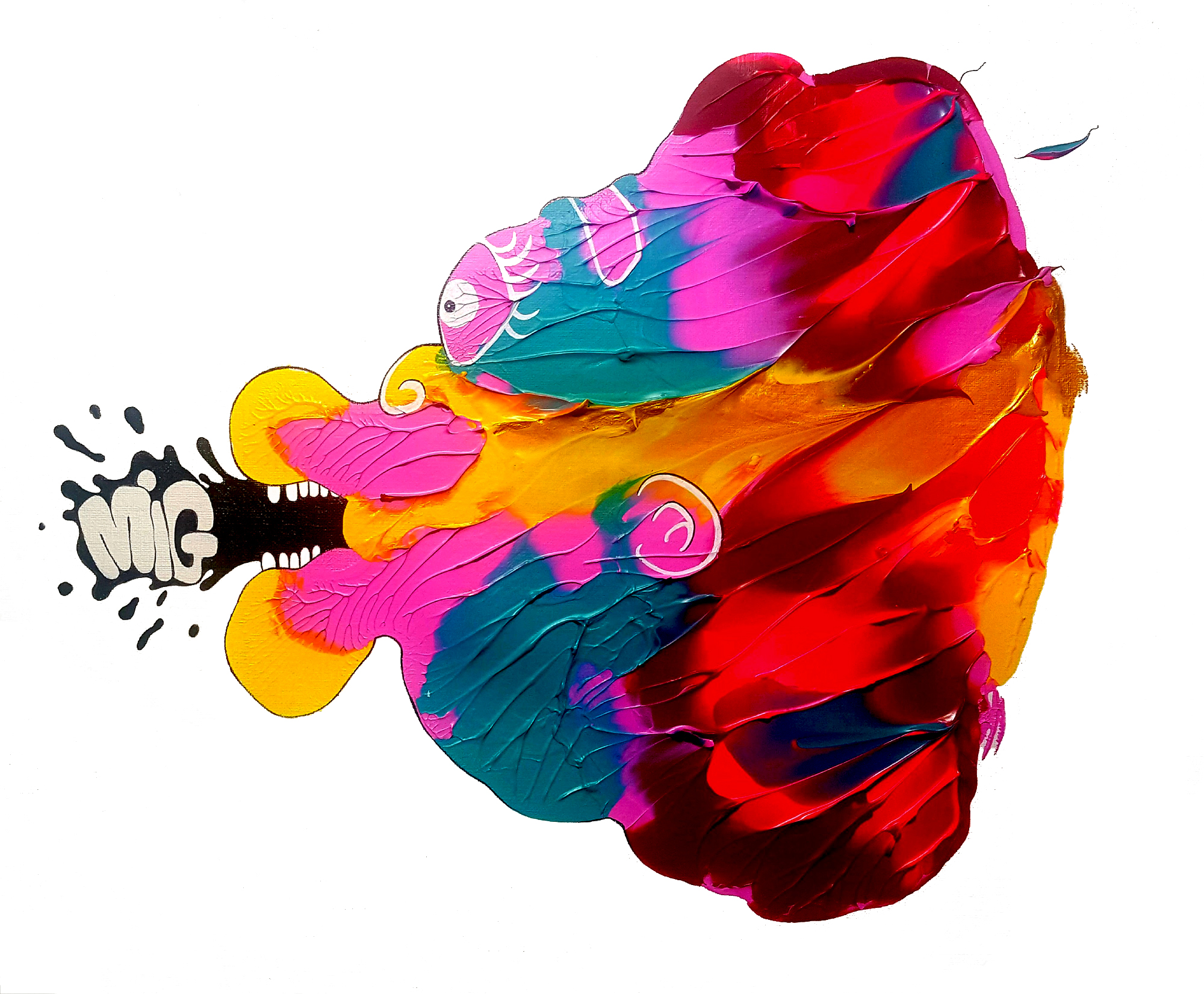 Nasce con la stessa tecnica delle due opere “A kid at heart” e “Signora mia”. Con il metodo del “MIG-MUG”, dove manca il “MAG”, l’immagine viene generata soltanto da una delle due macchie speculari, e non dalla somma.